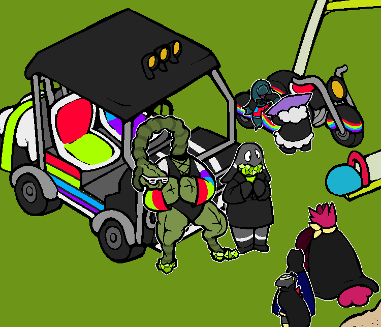 The body type riding shotgun vaults himself out of the vehicle, landing with a loud thud. Cynthia introduces him as Marvel, a brain type. Marvel himself is quiet, settling for a quick hello as he looks your TCPs over.