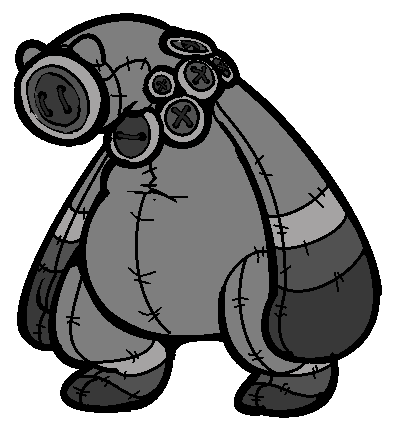| Physical Appearance: Button eye types have a standard build for their category. They have two arms and two legs. They have a button replacing their head with two threads going vertical through the holes, resembling eyespots. Around their neck is a cluster of buttons sewn sturdily onto the body. Their entire body is covered in stitches resembling a stuffed toy. | |